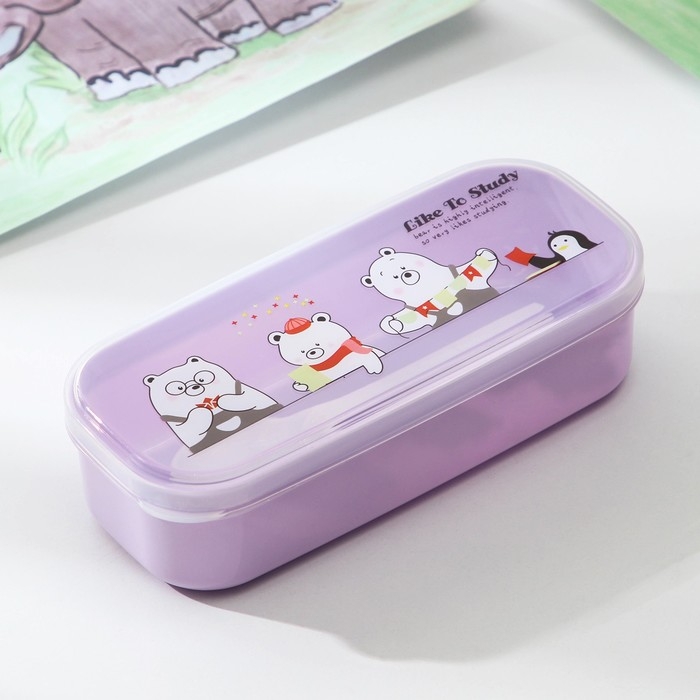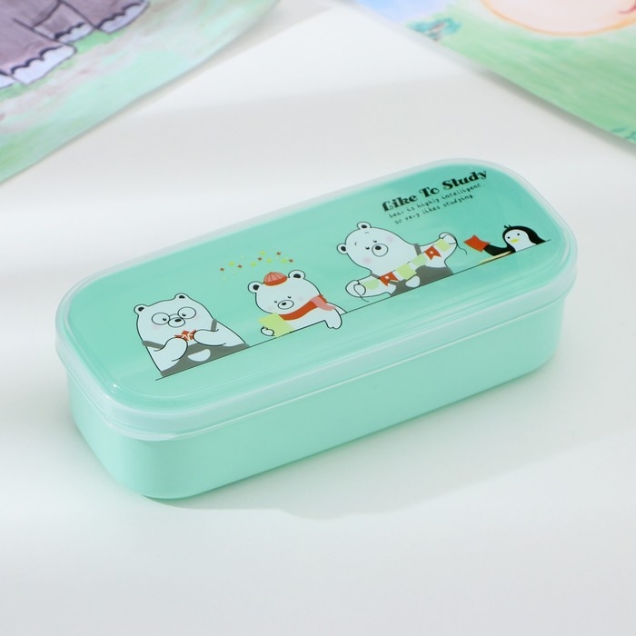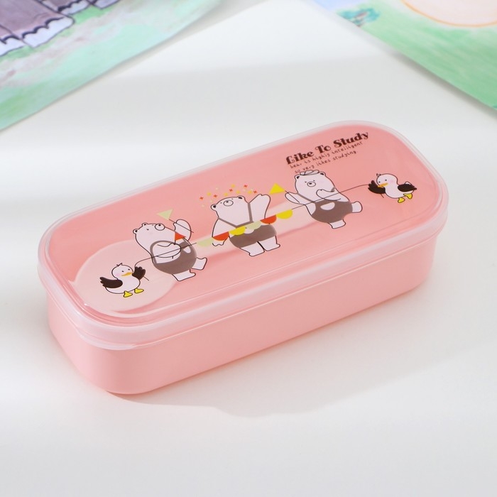 Ланч - бокс пластиковый с ложкой «Мишки», прямоугольный, 18×7×4,5 см, цвет МИКС