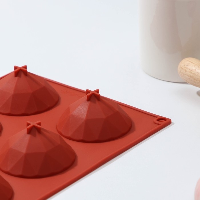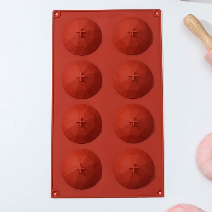 Форма для выпечки Доляна «Бриллиант», силикон, 8 ячеек, 29×17×2,2 см, d=5,8 см, цвет коричневый