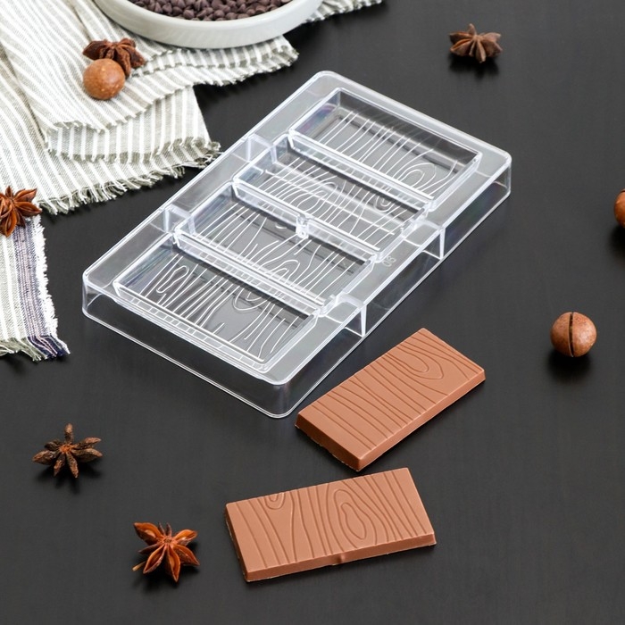 Форма для шоколада «Кора дерева», 20×12×2,5 см, 4 ячейки 8×4×1 см, цвет прозрачный