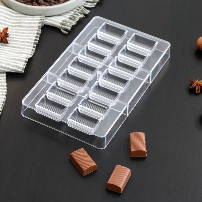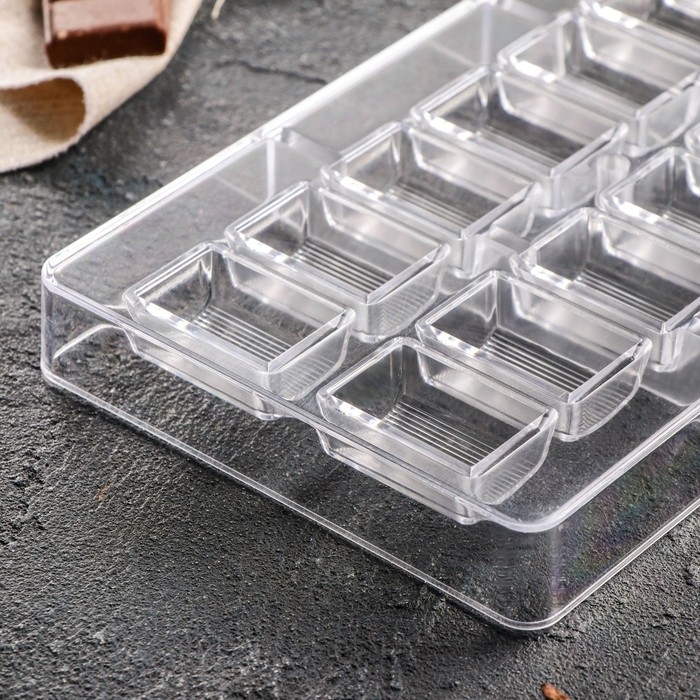 Форма для конфет и шоколада «Шоколатье», 20×12×2,5 см, 14 ячеек 3,3×2,1×1,5 см, цвет прозрачный
