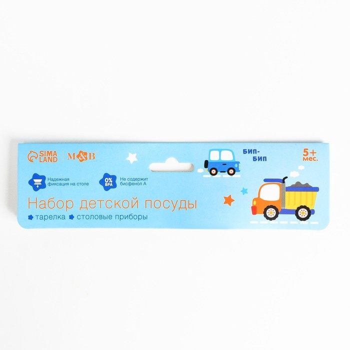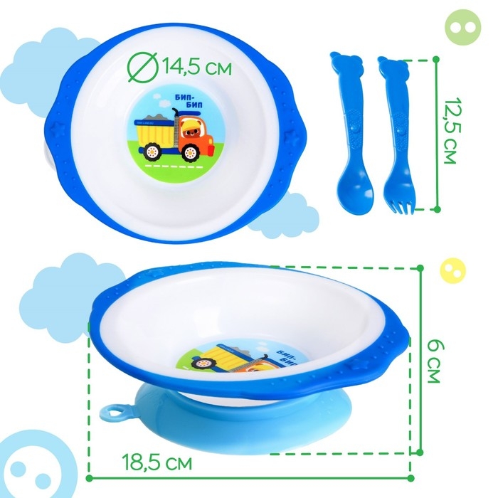 Набор детской посуды «Транспорт Бип-Бип», тарелка на присоске 250мл, вилка, ложка