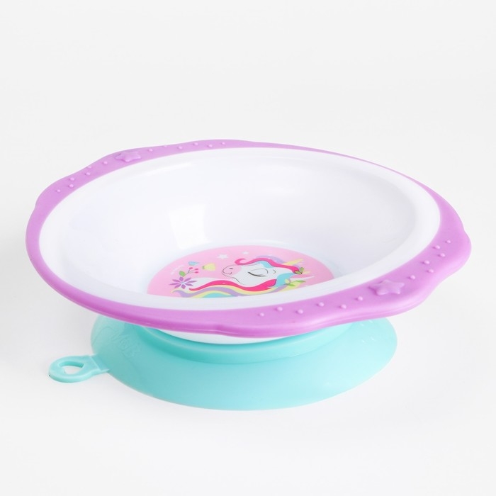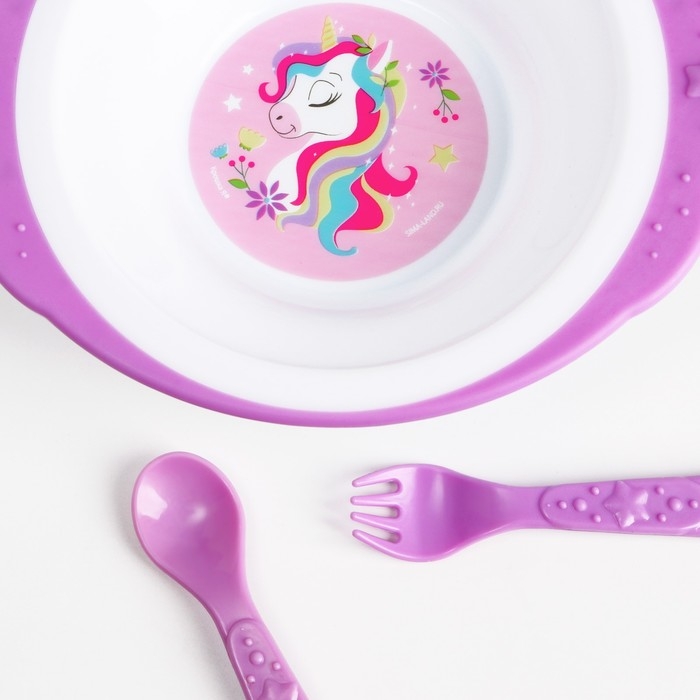 Набор детской посуды «Единорожек», тарелка на присоске 250мл, вилка, ложка
