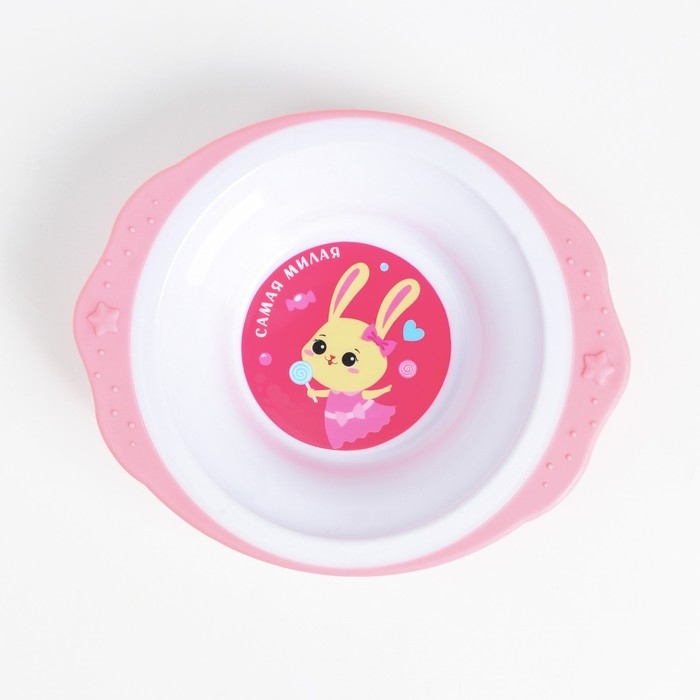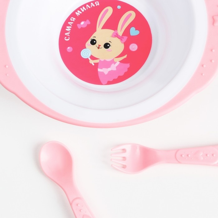 Набор детской посуды «Зайка Полли», тарелка на присоске 250мл, вилка, ложка