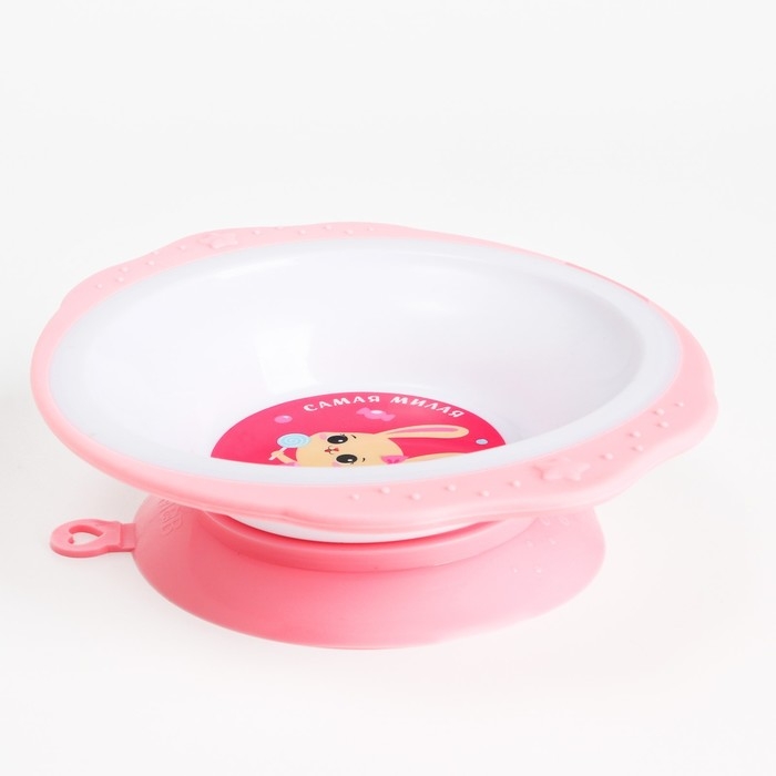 Тарелка детская на присоске, ложка, Крошка Я, цвет розовый