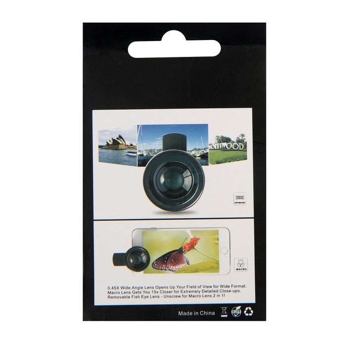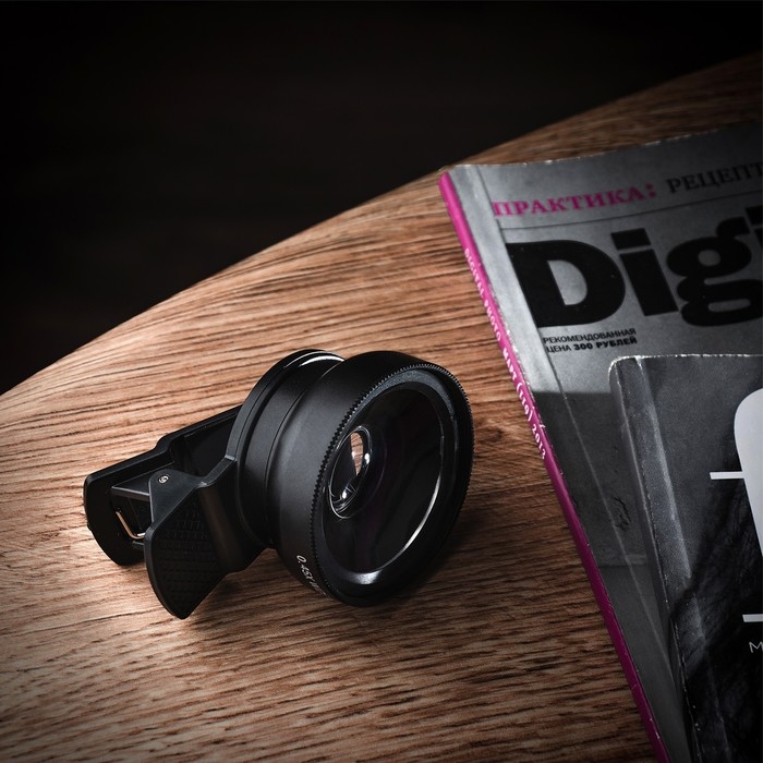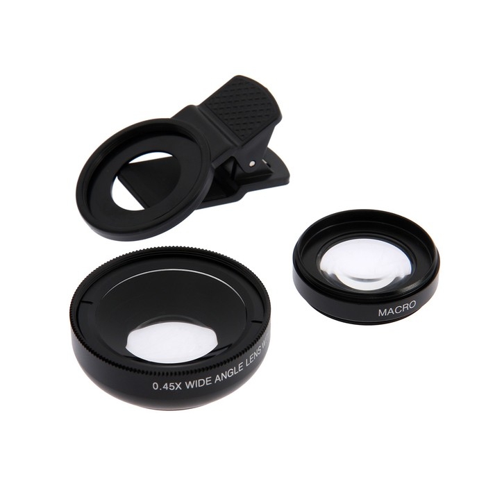 Широкоугольный макрообъектив-линза для телефона 2 в 1, 0.45Х, 37 мм, чёрный