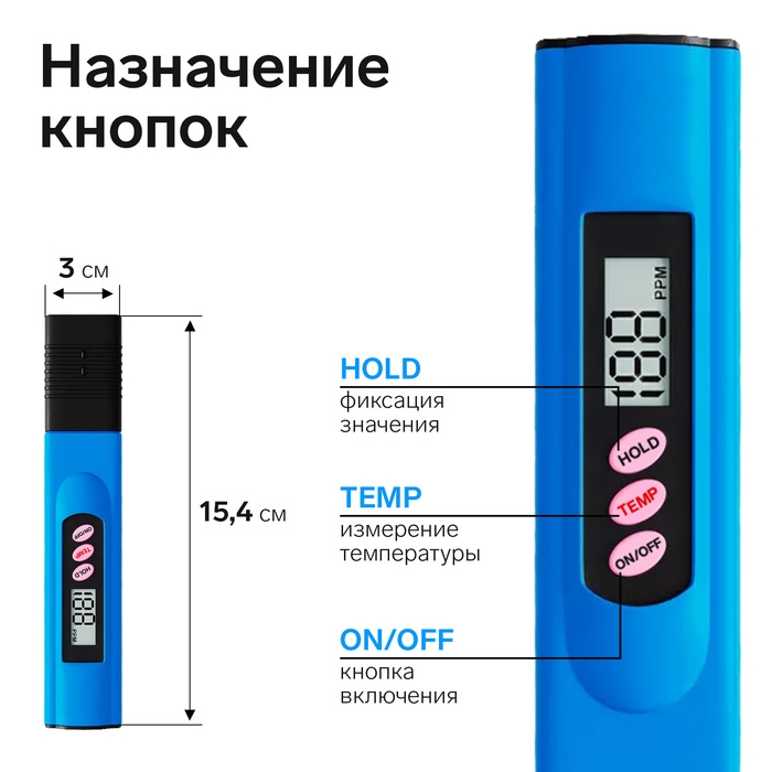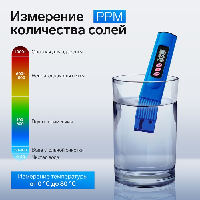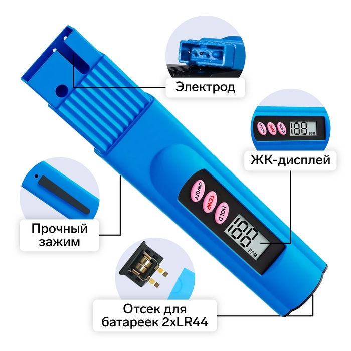 Тестер для воды LWT-01, солевой, цифровой, от 2*LR44 (в компл), голубой