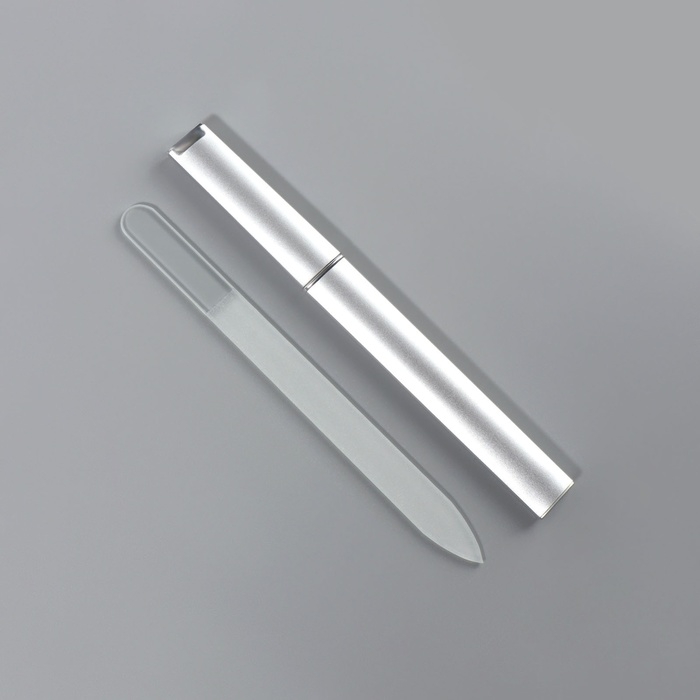 Пилка стеклянная для ногтей, 14 см, в футляре, цвет прозрачный/серебристый