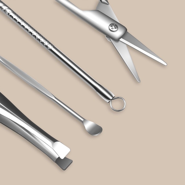 Книпсер, Косметологическая игла, Ножницы, Пилка, Пинцет, Пушер, Ухочистка, Шабер