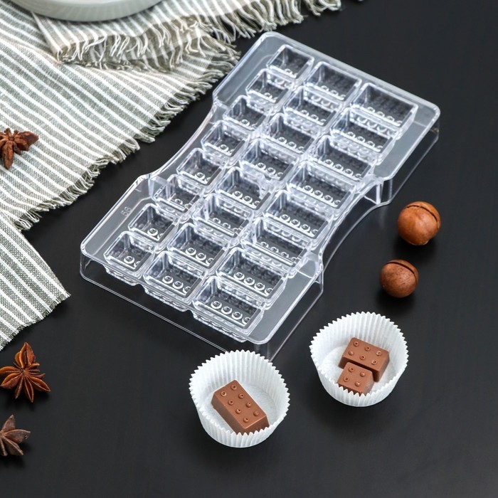 Форма для конфет и шоколада «Лего», 24 ячейки, 20×12×2,5 см, глубина 1,5 см, цвет прозрачный