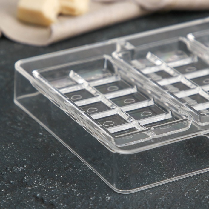 Форма для шоколада «Плитки с сердцами», 20×12×2,5 см, 4 ячейки 8,5×4,2×0,7 см, цвет прозрачный