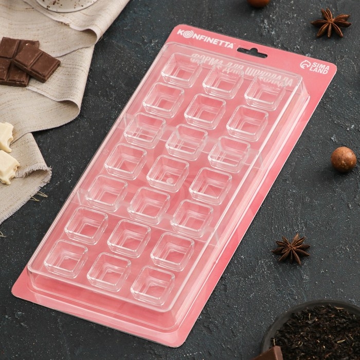 Форма для конфет и шоколада KONFINETTA «Тоффи. Квадрат», 27,5×13,5×2,5 см, 21 ячейка 2,5×1,5 см, цвет прозрачный