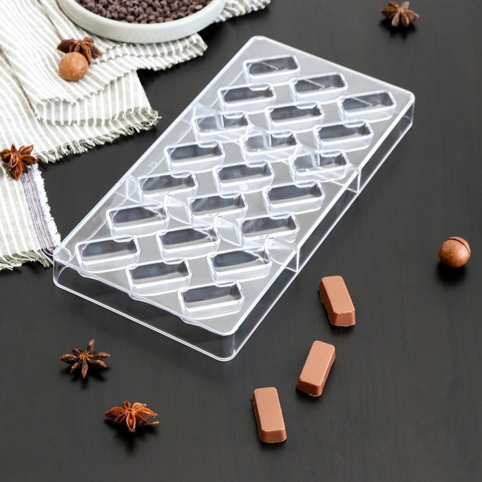 Форма для конфет и шоколада KONFINETTA «Буэно», 27,5×13,5×2,5 см, 21 ячейка 3,5×1,5×1 см, цвет прозрачный