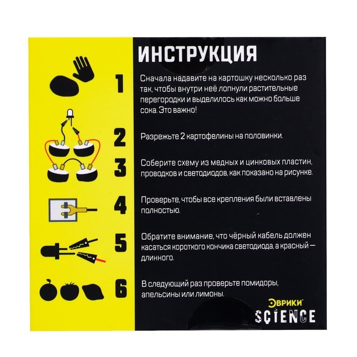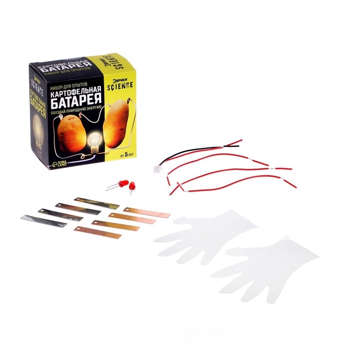 С помощью набора для опытов «Эврики» ребёнок превратит обыкновенный картофель в настоящую батарейку и запитает от него лампочку.