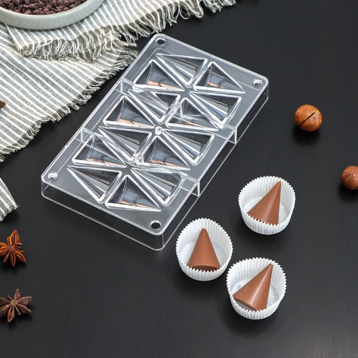 Форма для конфет и шоколада «Средний конус», 20×12×2,5 см, 14 ячеек 4,1×3,2×1,8 см, цвет прозрачный
