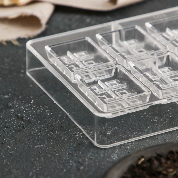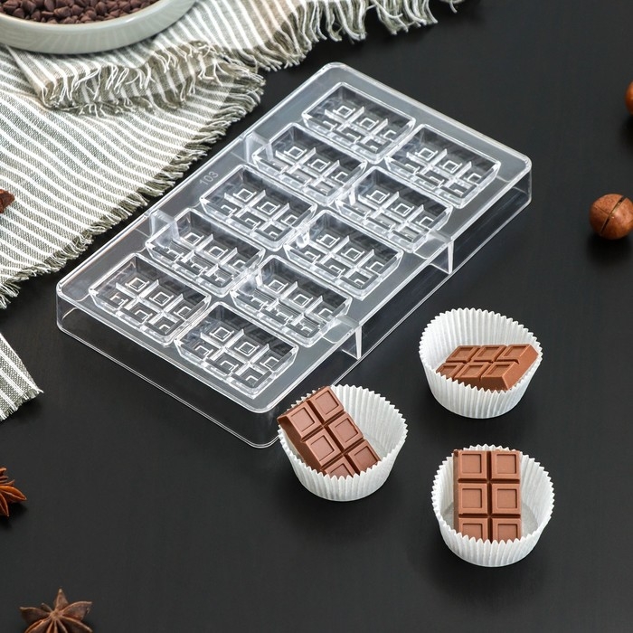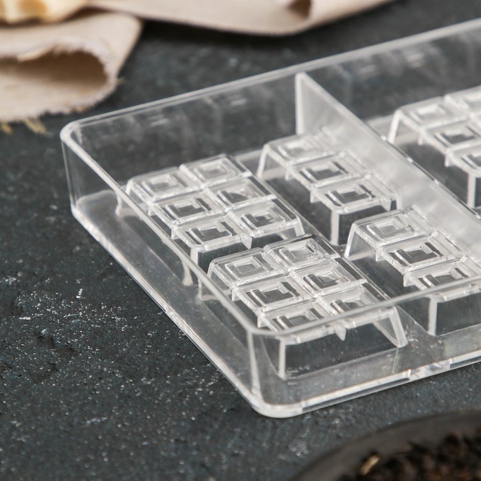 Форма для конфет и шоколада «Таволетта», 20×12×2,5 см, 10 ячеек 4,2×2,8×0,8 см, цвет прозрачный