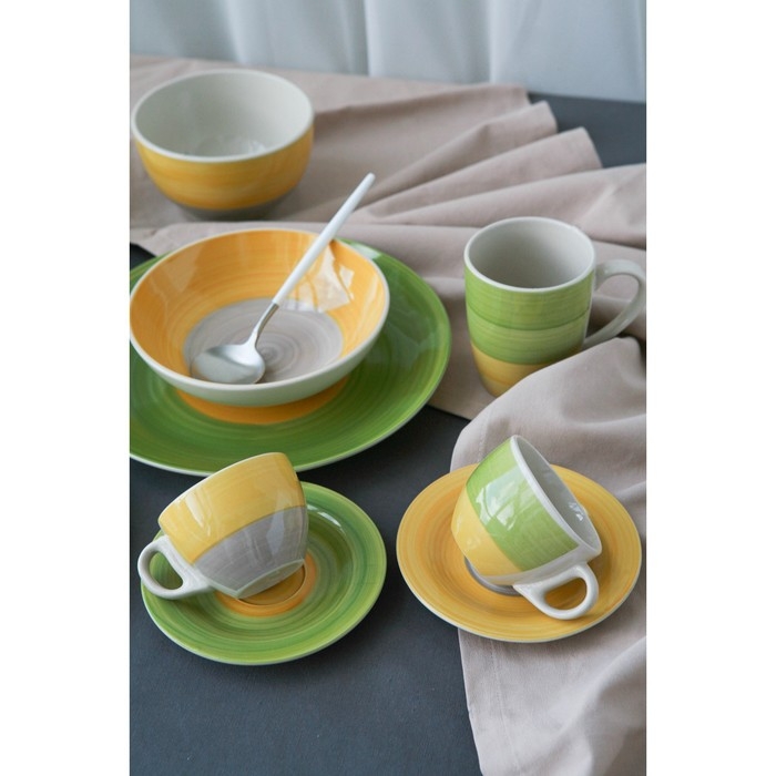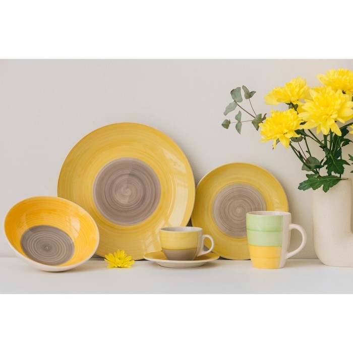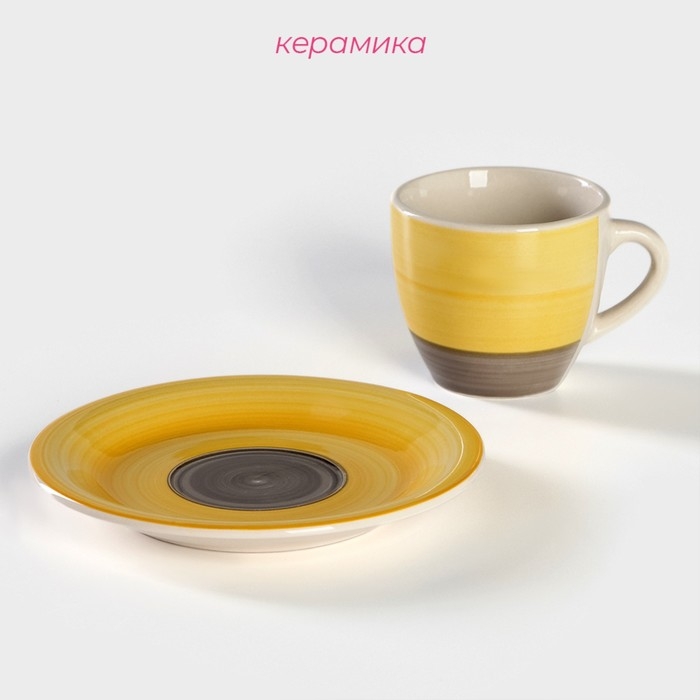 Чайная пара керамическая Доляна «Бутон», 2 предмета: чашка 200 мл, блюдце d=14,5 см, цвет жёлтый