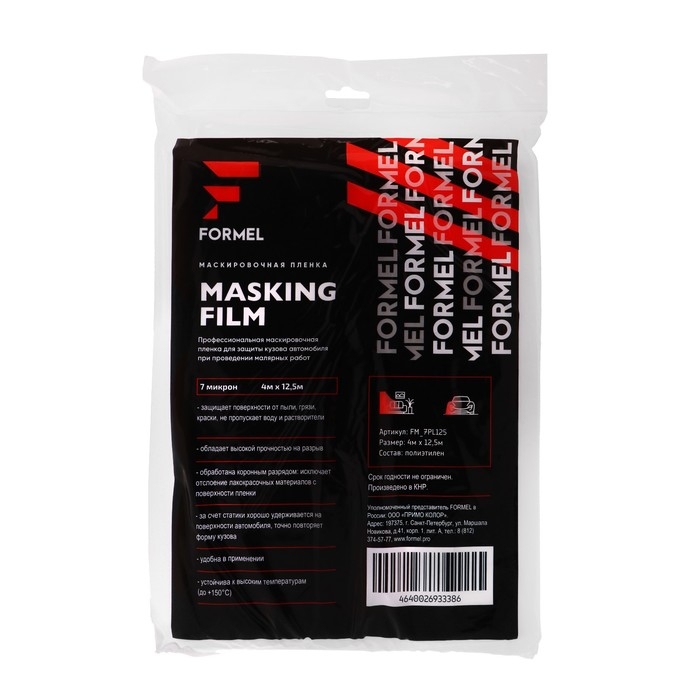 Пленка укрывная FORMEL (4х12.5 м; 7 мкм) служит для защиты кузова автомобиля от лакокрасочной продукции, грязи и пыли во время проведения малярных работ.