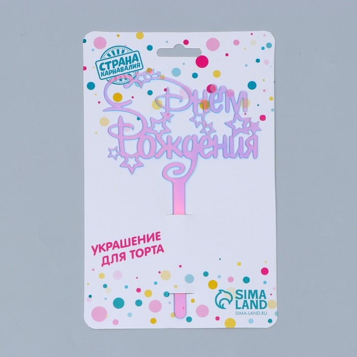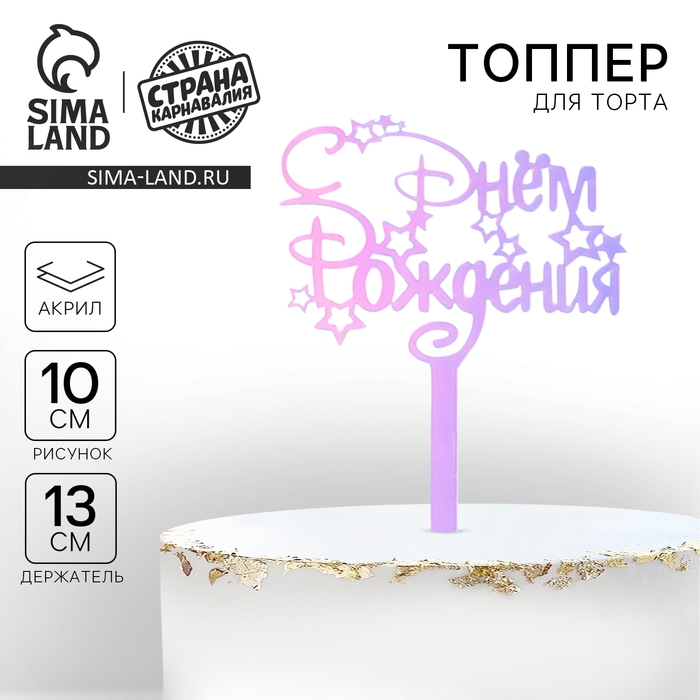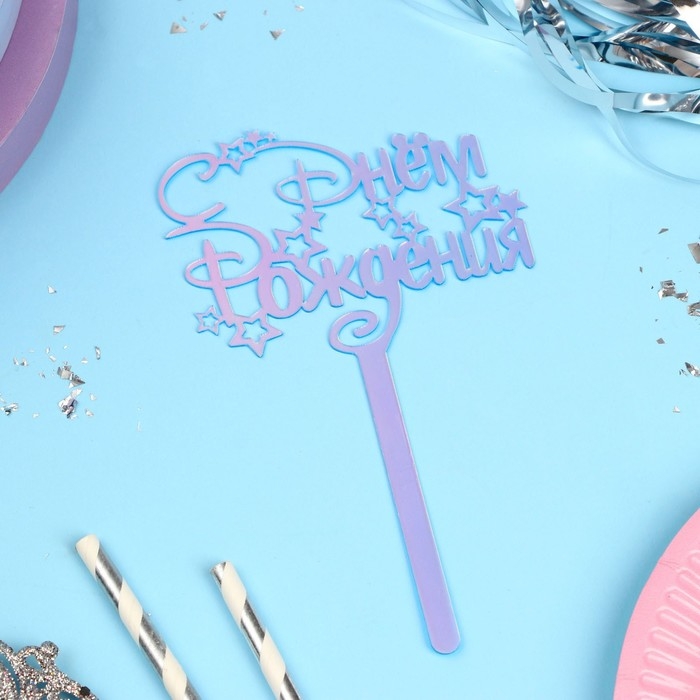 Топпер акрил «С Днём Рождения», голография, 15 см