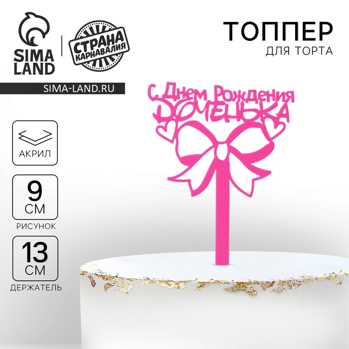 Топпер акрил «С Днём Рождения, доченька», 13 см