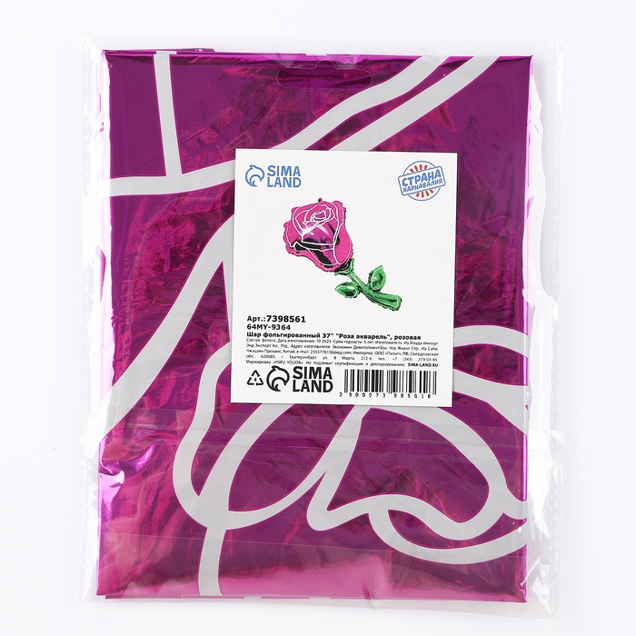 Шар фольгированный 37" «Роза акварель», цвет розовый