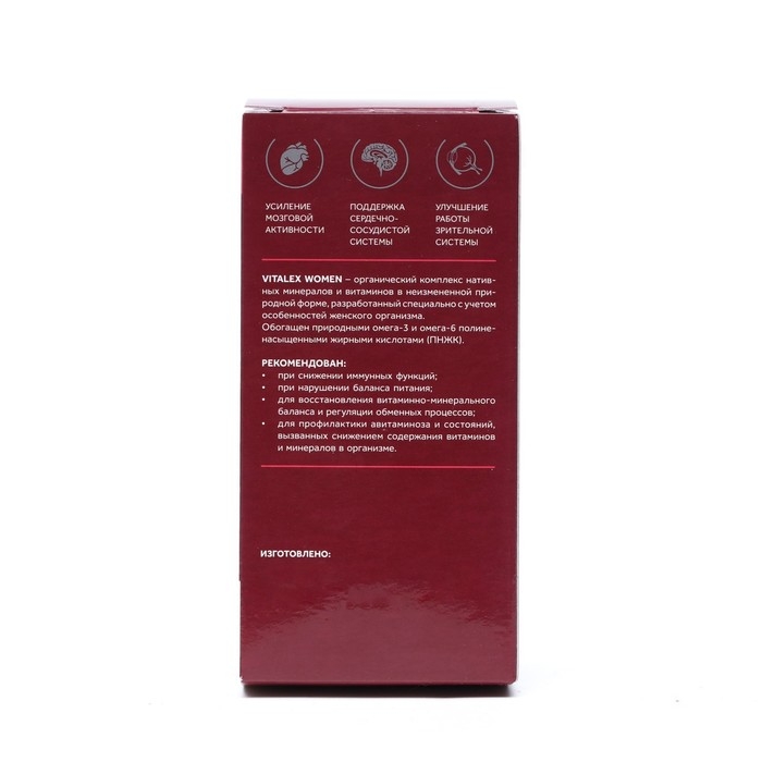 VITALEX WOMEN — органический комплекс нативных минералов и витаминов в неизмененной природной форме, разработанный специально с учетом особенностей женского организма. Обогащен природными омега-3 и омега-6 полиненасыщенными жирными кислотами (ПНЖК).