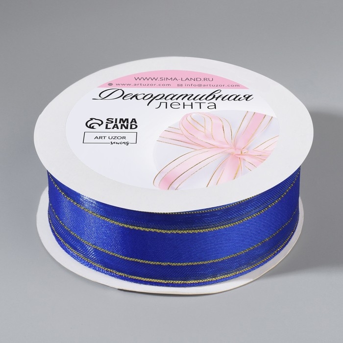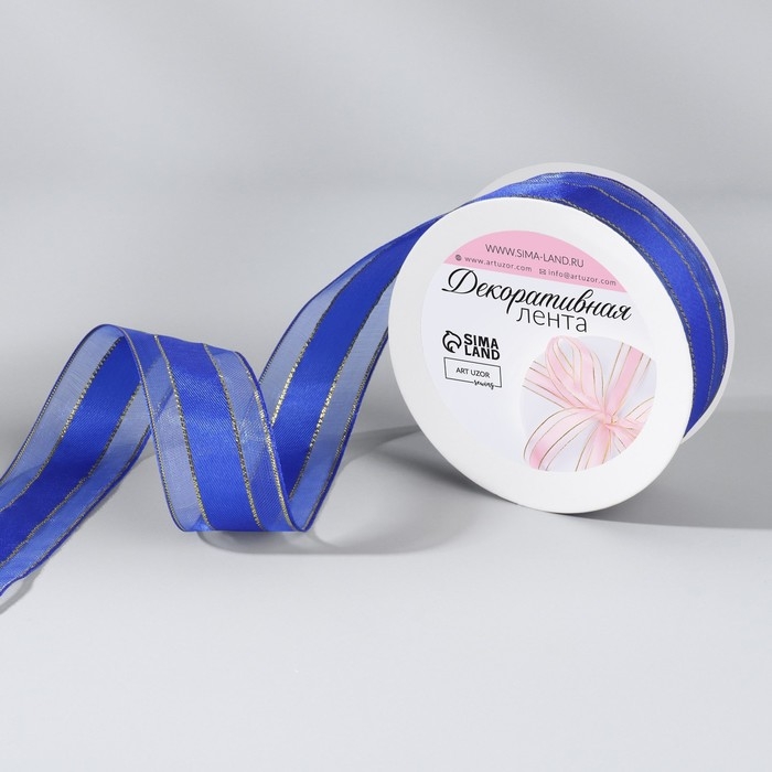 Лента декоративная, капроновая/атласная, с люрексом, 25 мм, 18 ± 1 м, цвет синий