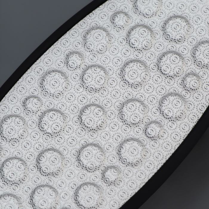 За счёт дизайна, тёркой могут пользоваться не только женщины, но и мужчины. На металлической поверхности с помощью лазера сделаны микрозубчики, которые за 10 пропилов снимут 1 мм огрубевшей кожи. Другая сторона тёрки отполирует уже подготовленный участок до идеального состояния. Проводить такую процедуру можно как на распаренной коже ног, так и на сухой. Комфортную эксплуатацию педикюрного инструмента обеспечит длинная ручка. Между подходами нужно промывать рабочую область в тёплой воде.