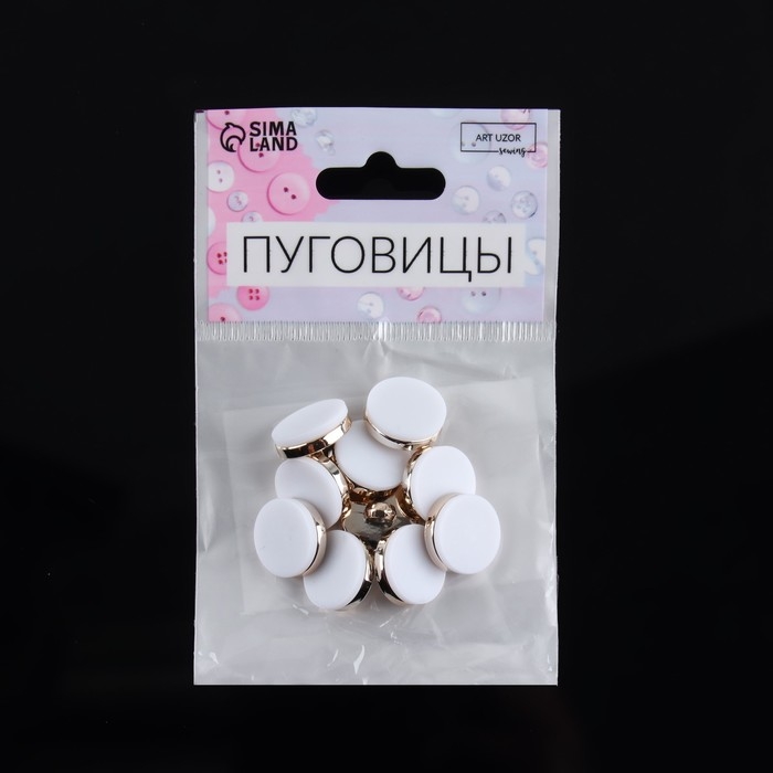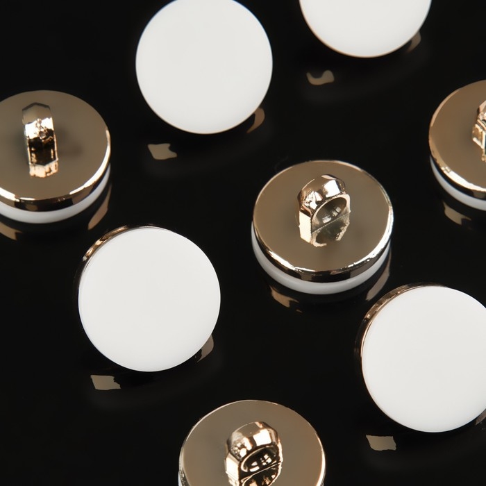 Набор пластиковых пуговиц на ножке, d = 15 мм, 10 шт, матовые, цвет белый/золотой