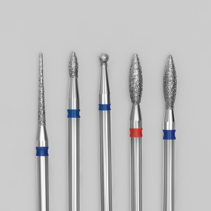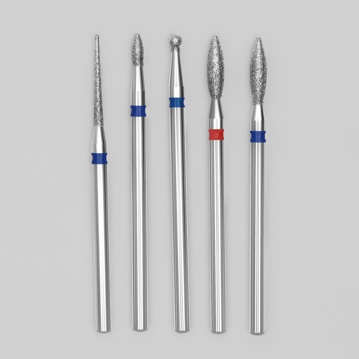 Фрезы алмазные для маникюра, 5 шт, форма и зернистость АССОРТИ