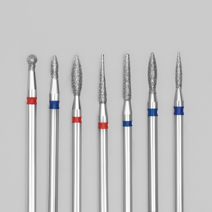 Фрезы алмазные для маникюра, 7 шт, форма и зернистость АССОРТИ