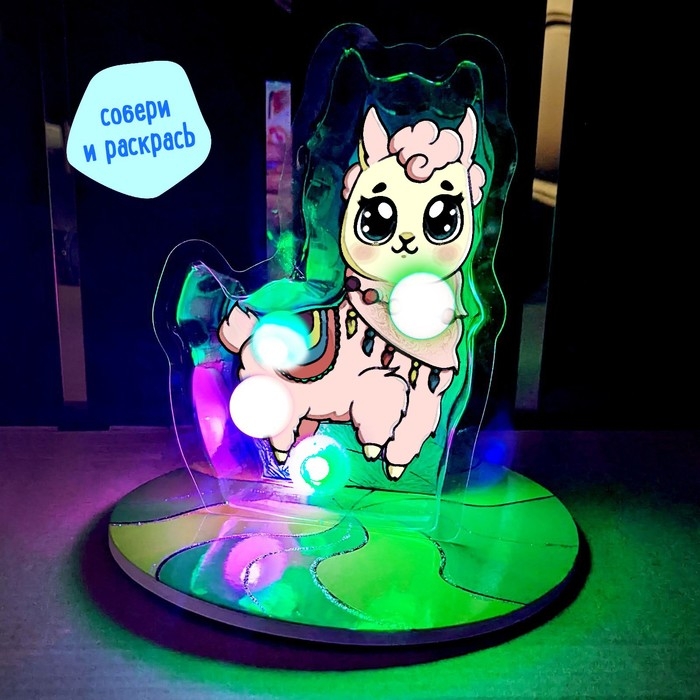 Погружайтесь в творчество, фантазируйте и собирайте необычный ночник своими руками! Смешивайте цвета из набора, чтобы получить новые оттенки, и раскрашивайте фигурку. После того, как фигурка высохнет, соедините детали и включите гирлянду. Благодаря цветным огонькам ваш волшебный ночник оживёт.