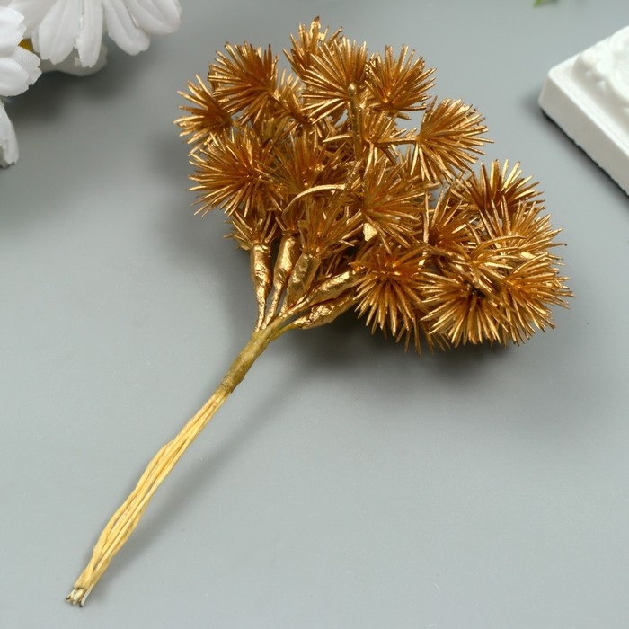 Искусственное растение для творчества "Еловые шарики" 1 букет=6 веточек бронза 14 см