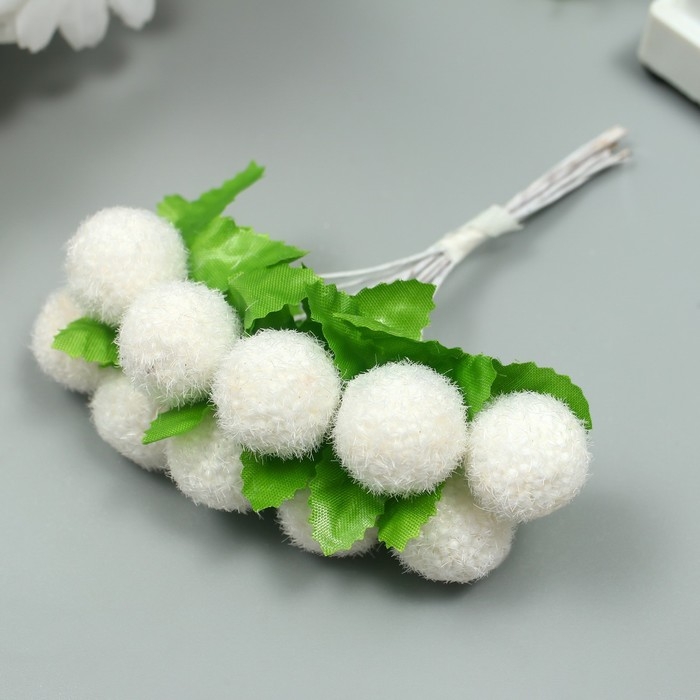 Тычинки для цветов "Шарик мохнатый белый" d=1,5-2 см 1 букет=10 шт 10 см