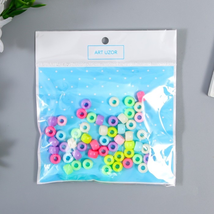 Бусины для творчества пластик "Цилиндрики" пастель набор 15 гр 0,6х0,9 см