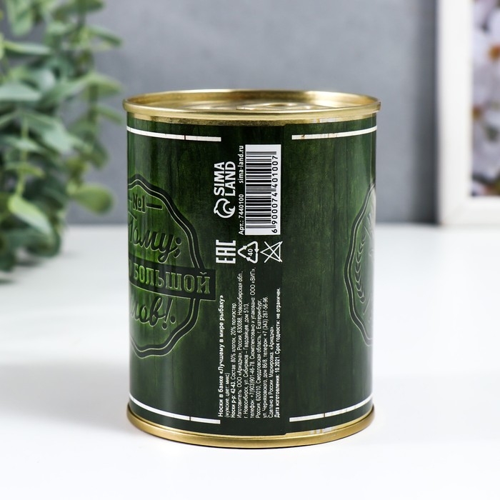 Носки в банке "Лучшему в мире рыбаку" (внутри носки мужские, цвет чёрный)