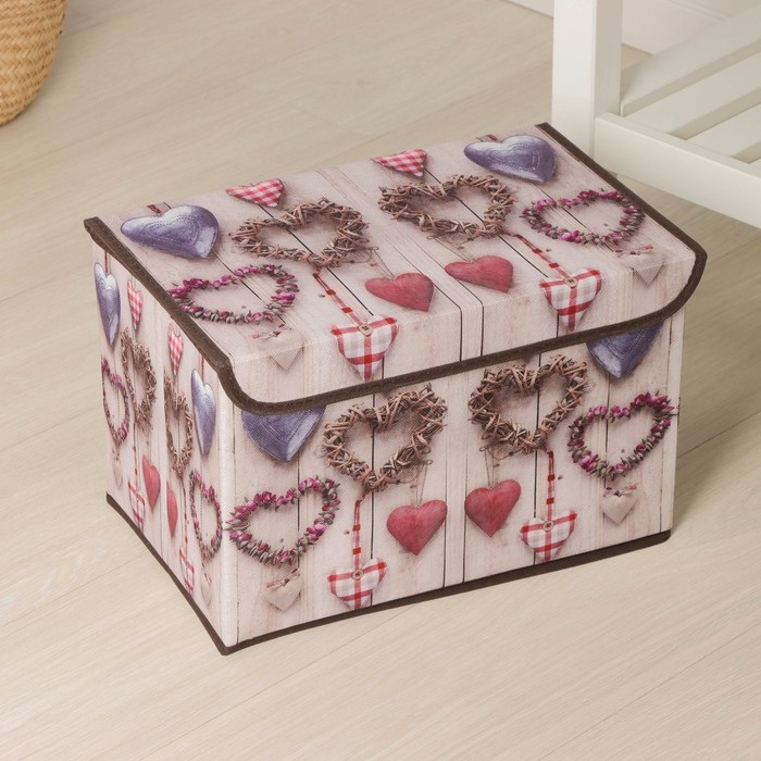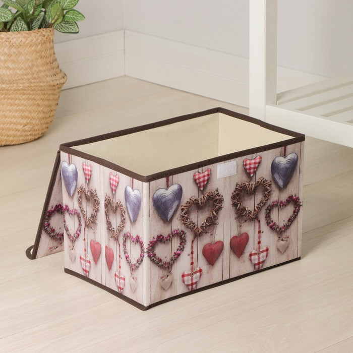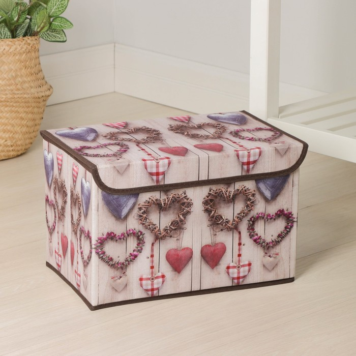 Короб стеллажный для хранения с крышкой «Сердца», 37×24×24 см