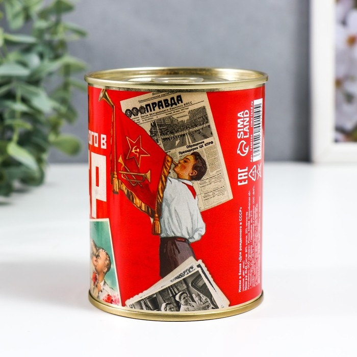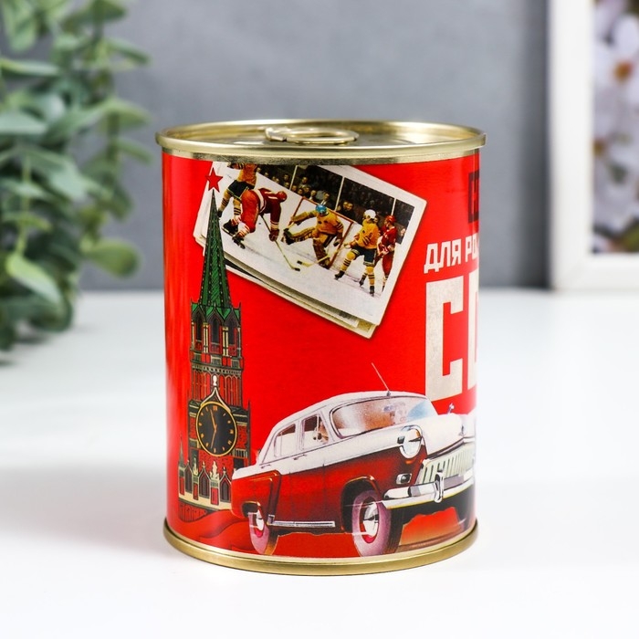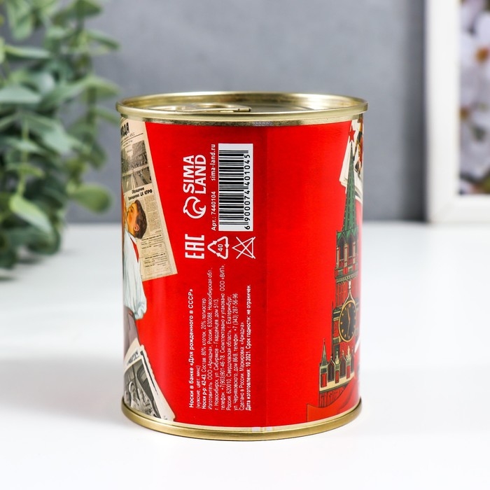 Носки в банке "Для рожденного в СССР" (внутри носки мужские, цвет чёрный)