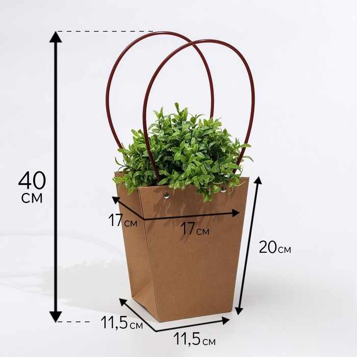 Сумка для цветов крафт влагостойкая, 17x17-11.5x11.5-20