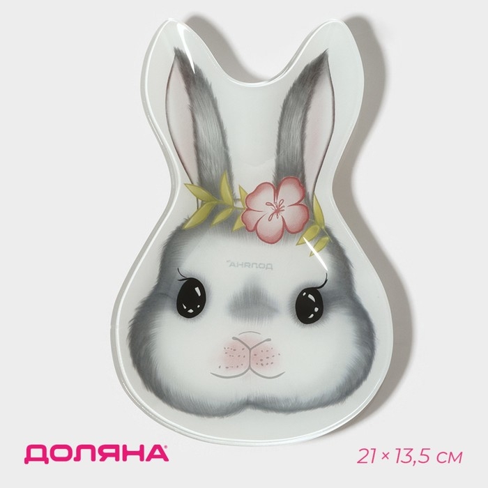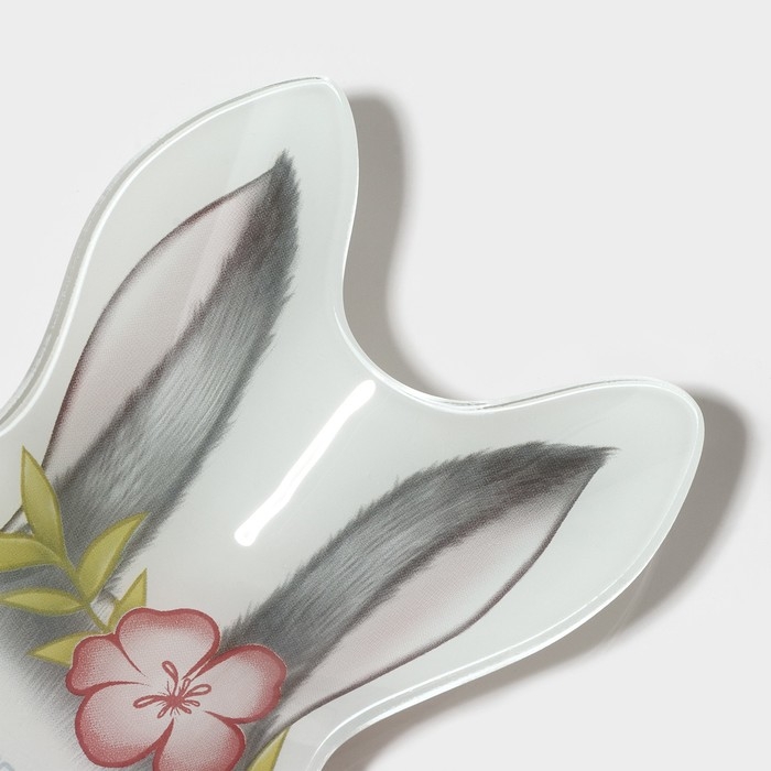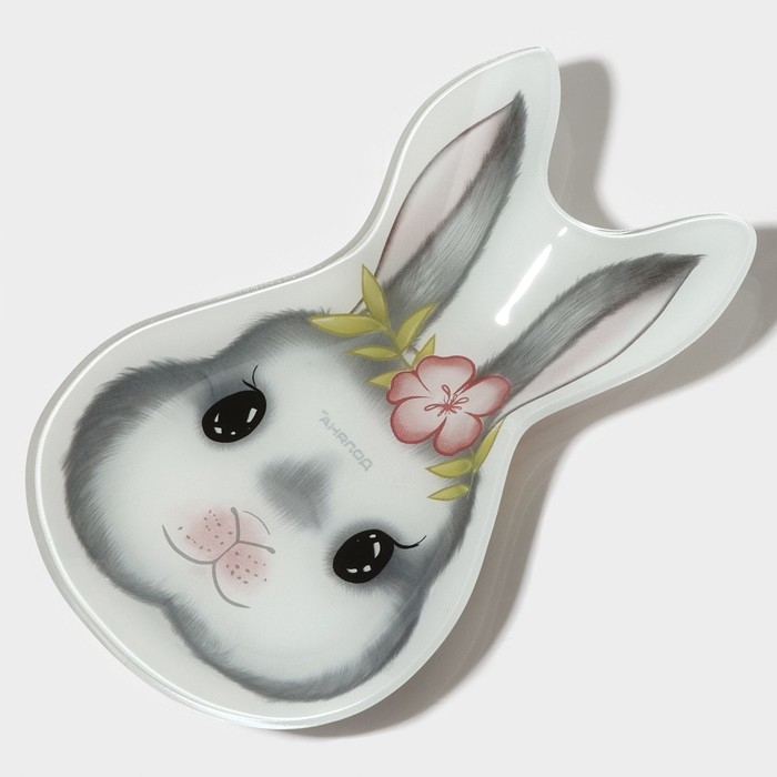 Блюдо стеклянное сервировочное Доляна «Цветочный кролик», 21×13,5×1,8 см