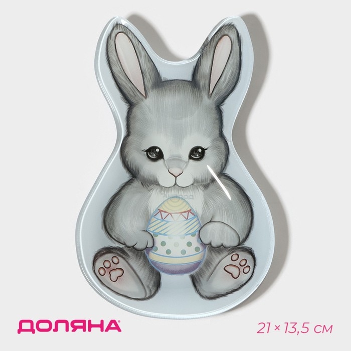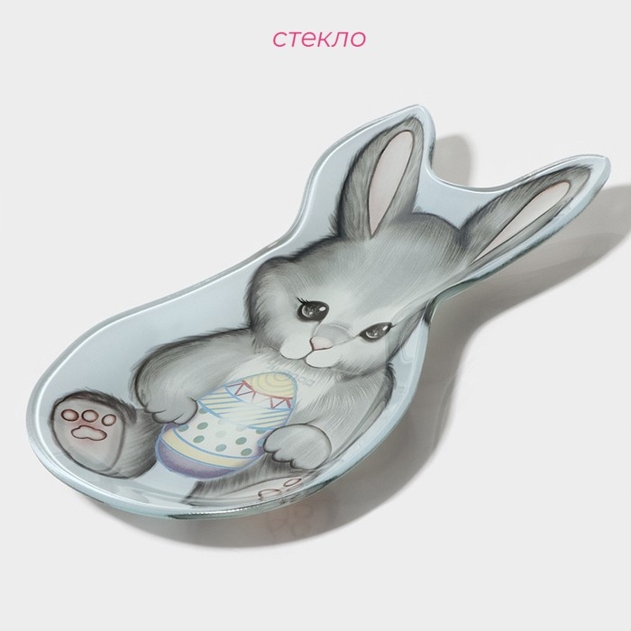 Блюдо стеклянное сервировочное Доляна «Пасхальный кролик», 21×13,5×1,8 см