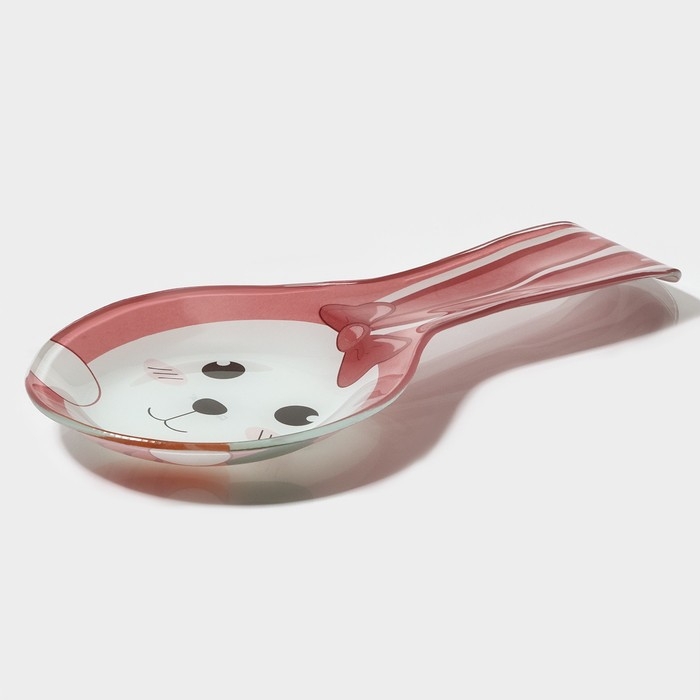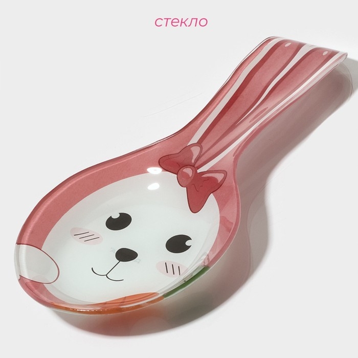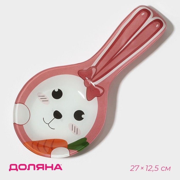 Подставка стеклянная под ложку Доляна «Зайка и морковка», цвет розовый
