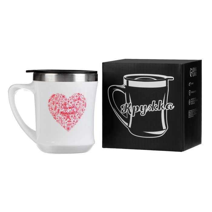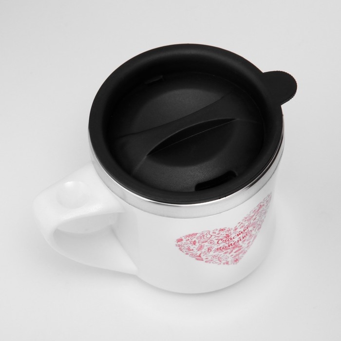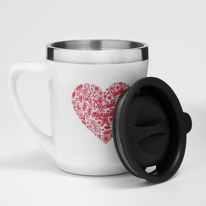Термокружка, 350 мл, Lifestyle "Счастье в моментах", сохраняет тепло 3 ч, белая