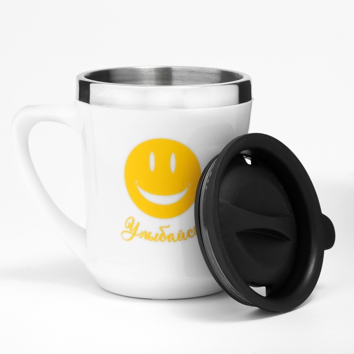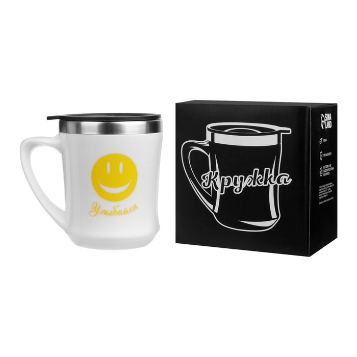 Термокружка, 350 мл, Lifestyle "Улыбайся", сохраняет тепло 3 ч, белая