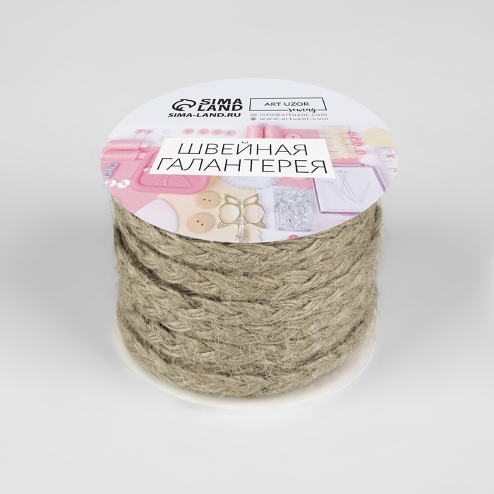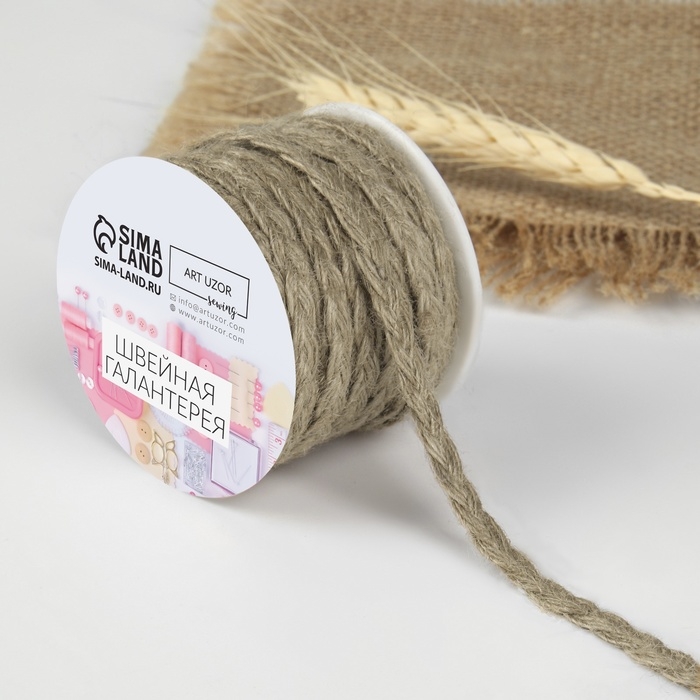 Тесьма декоративная холщовая «Косичка», 6 мм, 9 ± 0,5 м, цвет бежевый
