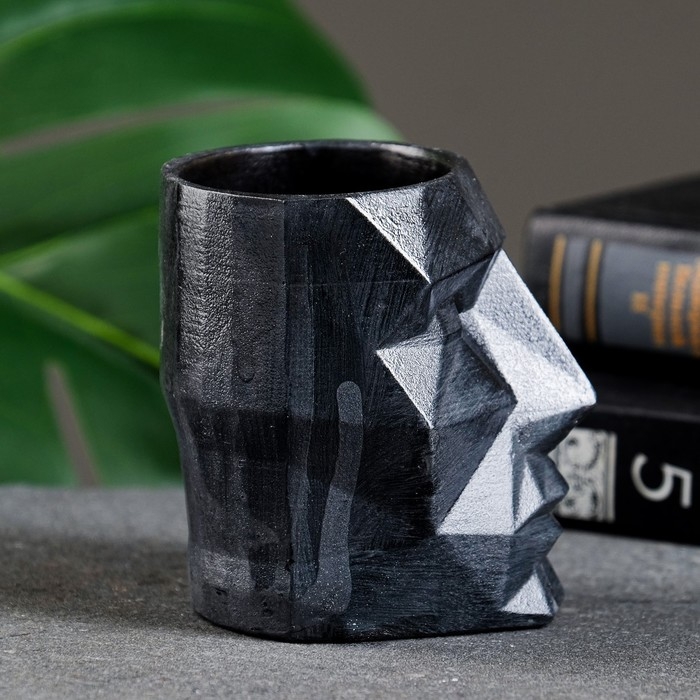 Кашпо - органайзер "Геометрическая голова" черное, 7,5х8,5х7см