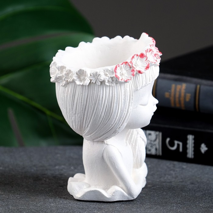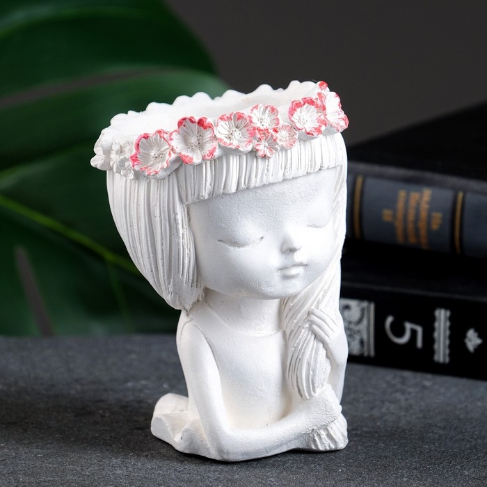 Кашпо - органайзер" Девушка с косой" перламутр, 11х8х8см