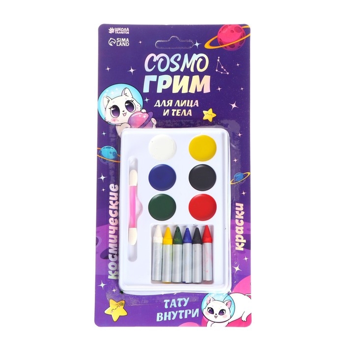 Грим для лица и тела - 6 карандашей, 6 цветов для нанесения, аппликатор, тату Cosmo