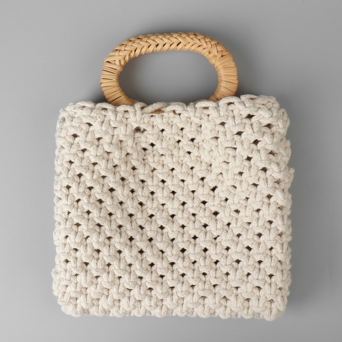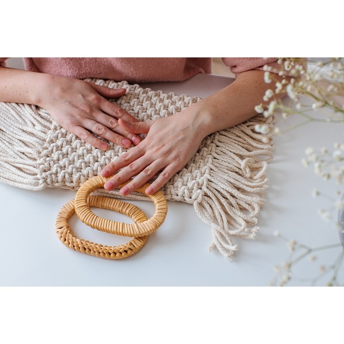 Ручки для сумок деревянные, плетёные, d = 9,8 × 5,9 / 13,5 × 9,5 см, 2 шт, цвет бежевый