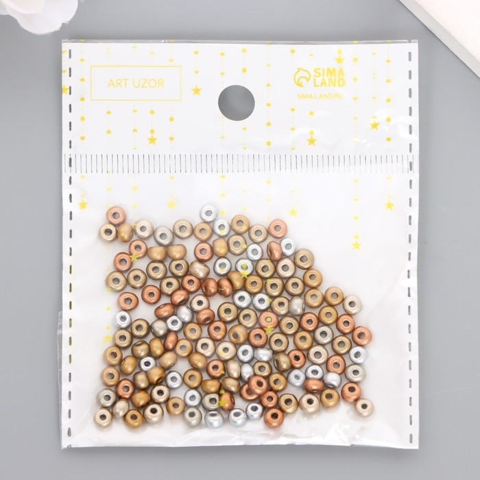 Бисер стекло 6/0 "Металлик. Меланж. Золото и серебро" 10 гр