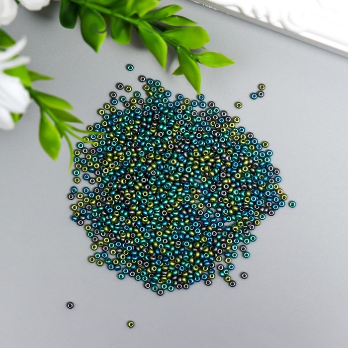 Бисер стекло 11/0 "Металлик. Меланж. Сине-зелёный" 10 гр